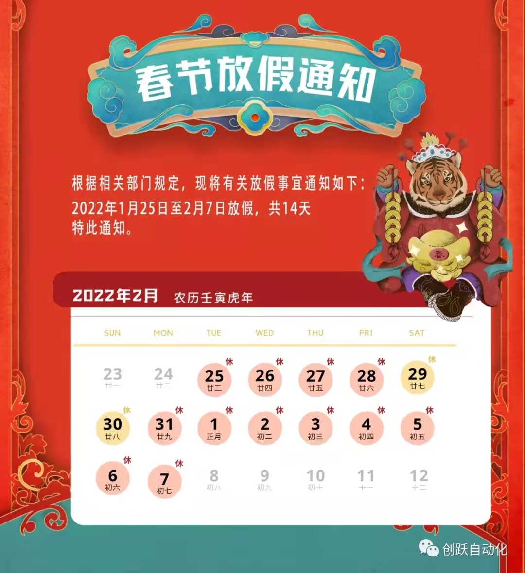 东莞创跃2022春节放假通知
