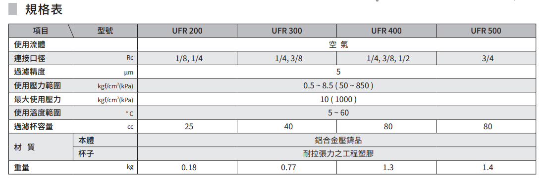 气立可新品上市!UFR系列-过滤调压器