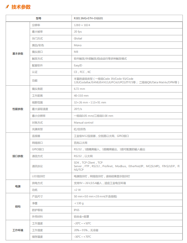 华睿R3000系列智能读码器,结构紧凑,可满足狭小空间安装;光源镜头集成化设计,包括固定距离和可手动调焦机型,简单易用、读码效果好。