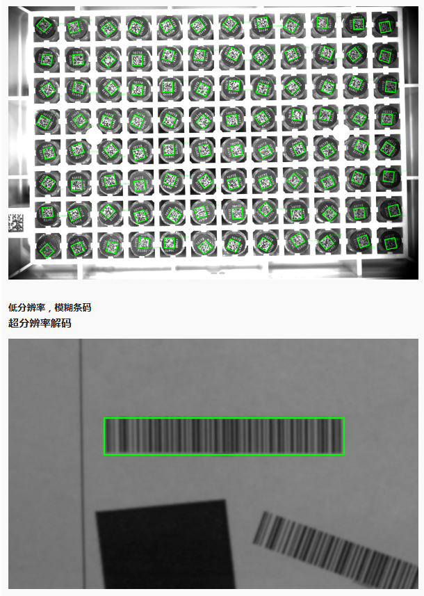 解码速度有了较大的提升,尤其是多码同时读取的场景,读码速度提升达3-4倍。针对脏污码、小PPM、模糊码,具有很好的还原能力,解码性能更强大。