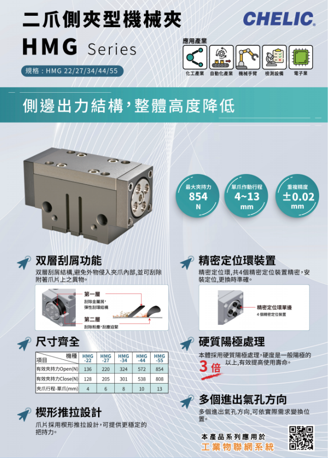 气立可!双层刮屑功能二爪侧夹型机械夹-HMG系列