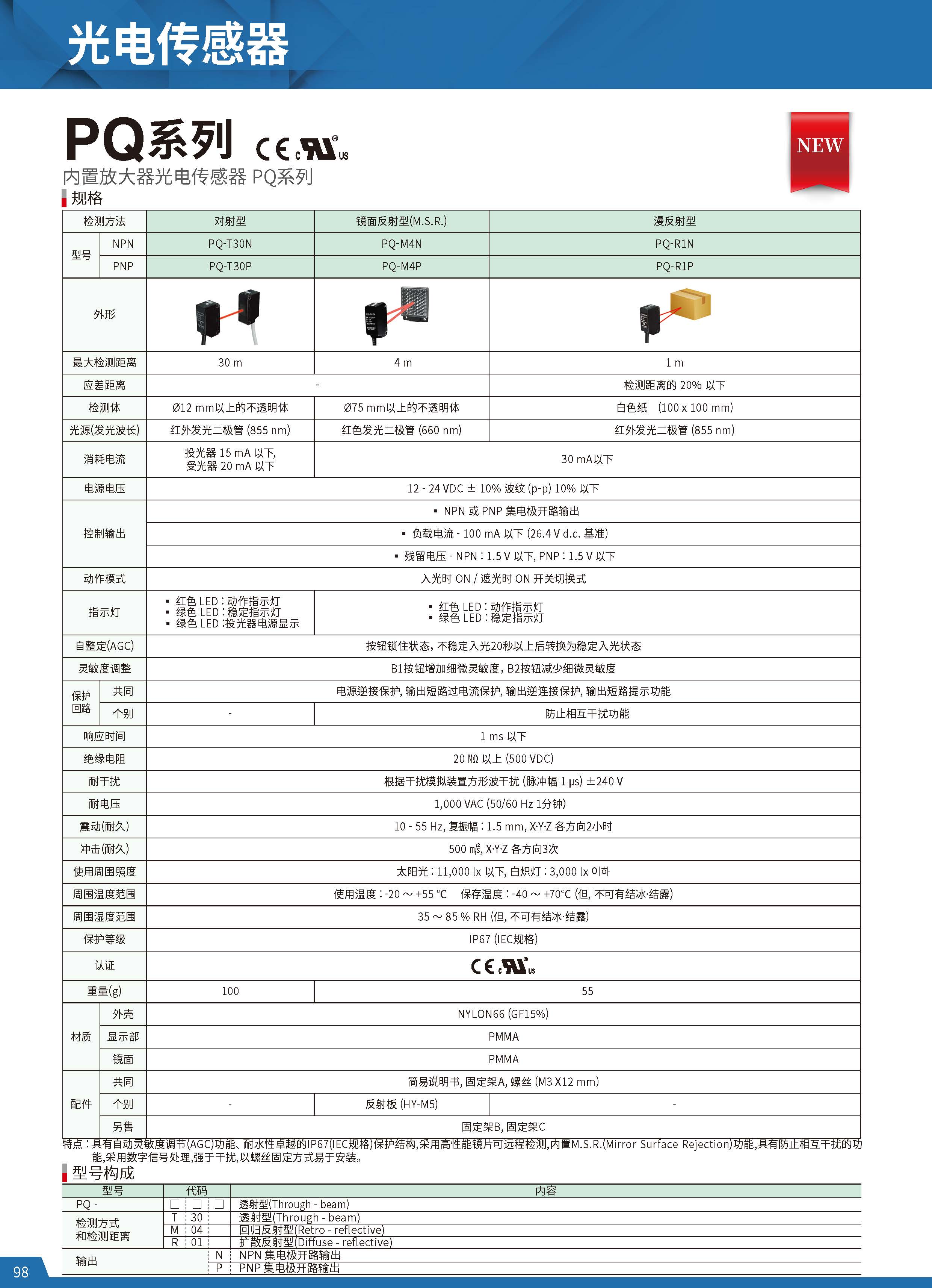 【韩荣乐嗣】PQ 系列紧凑型长距离光电传感器