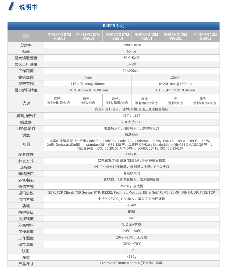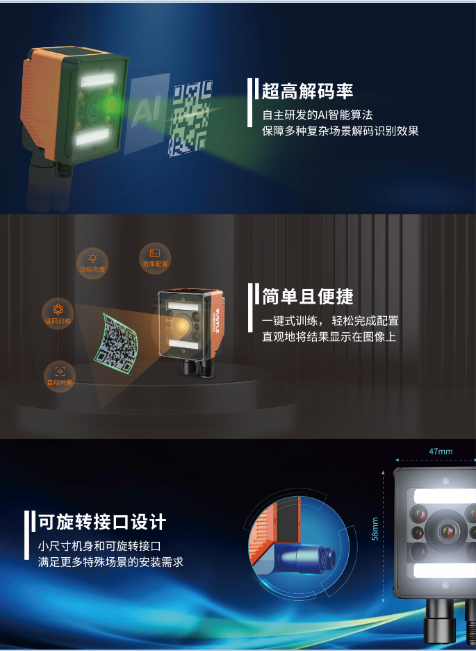 R4000系列读码器内置自研AI算法,实现了高解码率,并支持各种1D和2D代码。