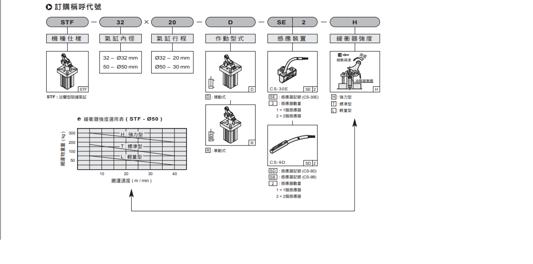 缸径:Ø32、Ø50,作动形式:单动型、复动型,行程:20、30mm。