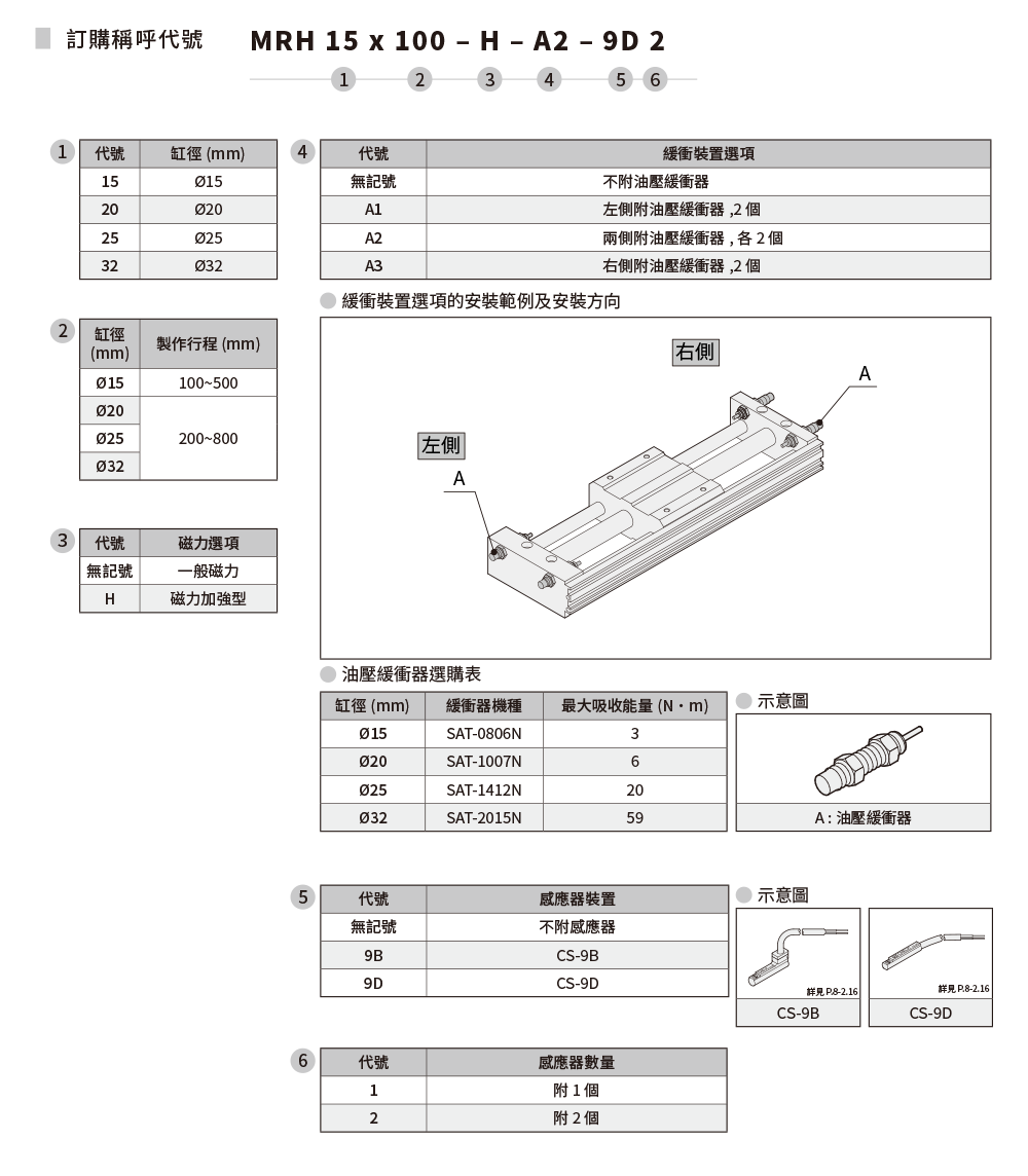 缸径:Ø15~Ø32,作动形式:复动型,行程:100~800mm。