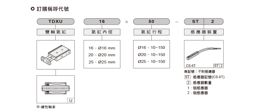 缸径:Ø16、Ø20、Ø25,作动形式:复动型,行程:10~150mm。