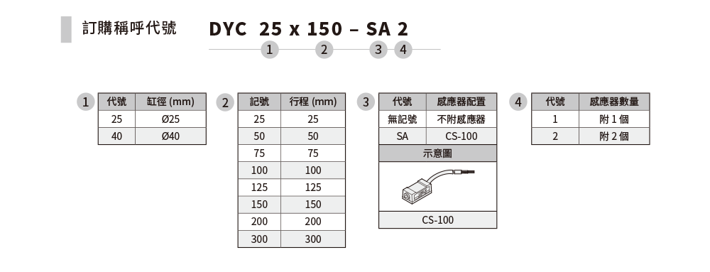缸径:Ø25~Ø40;作动形式:单动型;行程:25~300mm。