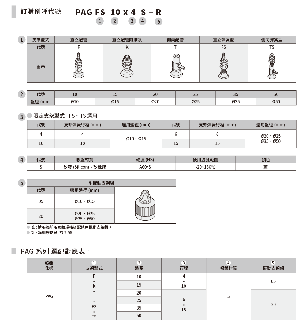 通过吸唇材质薄软,提升对易变形工作物的密封性。 多样化: 各种尺寸、材质与支架搭配选择
