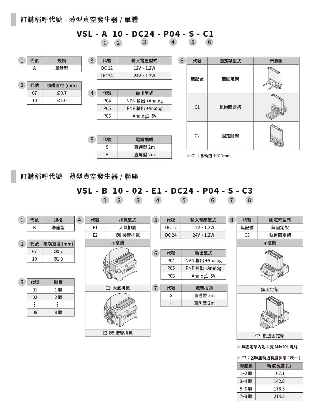 使用压力范围:0.2~0.6 Mpa;真空度:-90 Kpa;吸入流量:15 L/min;附真空产生 / 破坏电磁阀;附真空过滤器 / 消音器。统一进(排)气;可扩充至8连。