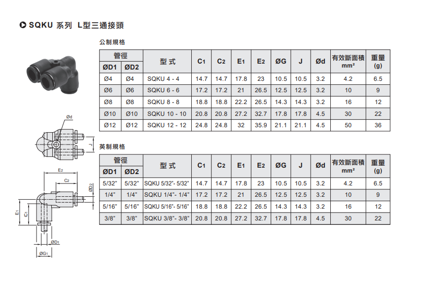 气立可CHELIC L型三通接头SQKU系列