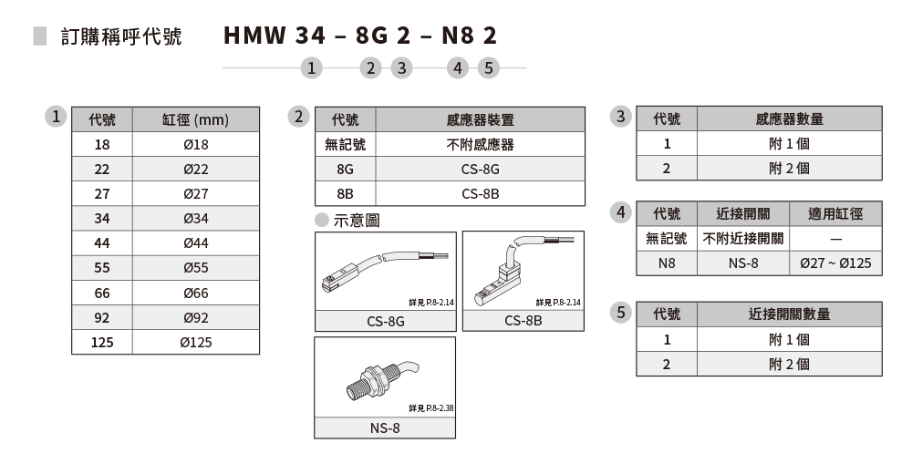 缸径:Ø18~Ø125;作动形式:複动型;单爪作动行程:2.5~30mm。