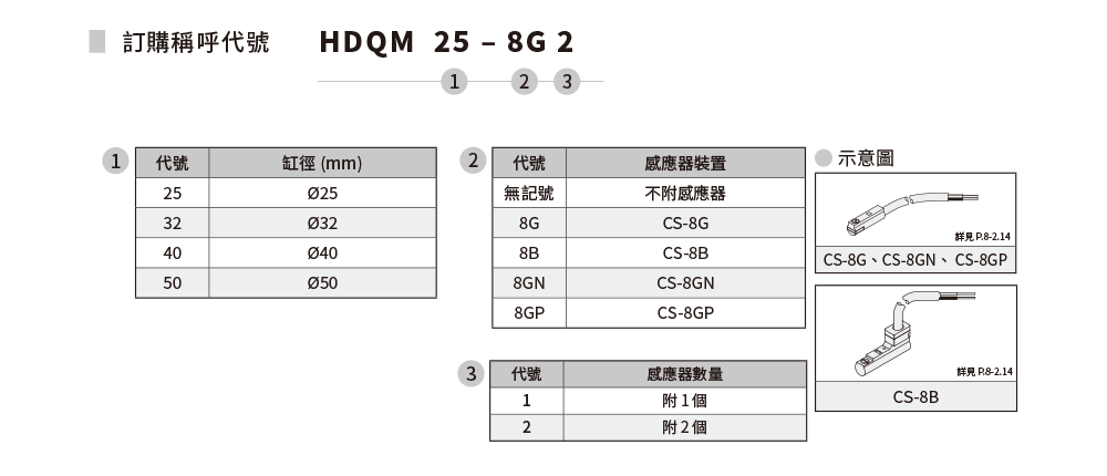 缸径:Ø25~Ø50,作动形式:複动型,开闭尺寸:6~12mm。