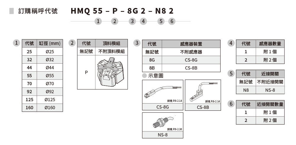 缸径:Ø25~Ø160;作动形式:复动型;单爪作动行程:4~20mm。