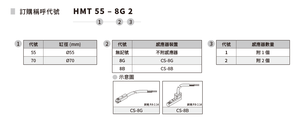 缸径:Ø55~Ø70;作动形式:複动型;单爪作动行程:8~10mm。