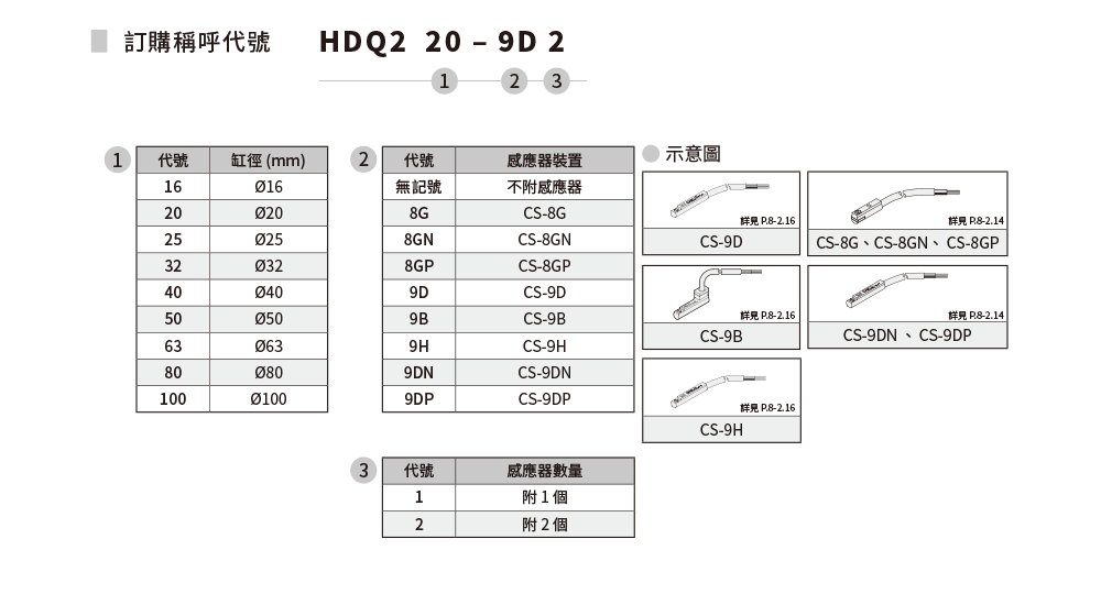 缸徑:Ø16~Ø100;作動形式:複動型;開閉尺寸:6~24mm。