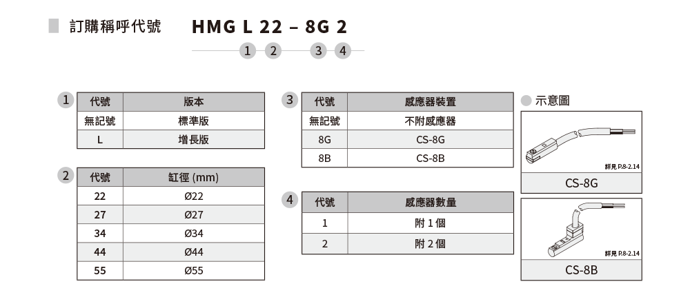 缸径:Ø22~Ø55;作动形式:複动型;单爪作动行程:4~13mm。